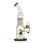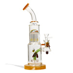 Providing the biggest bowl for dry herbs, the Dual Perc Water Pipe has a 14mm female ground that holds a matching 14mm male joint. This pipe presents a curved stem and a beautifully designed base with a buzzing bee inside. Moreover, the Dual Perc Water Pipe has a solid built base for a sturdy grip and an ergonomic hold. This water pipe is available in 4 colors: Red, Orange, Green, and Yellow.