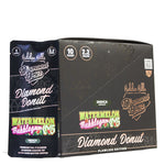 Give your shop the ultimate dry herb x concentrate combination with the Hidden Hills Diamond Boyz 2.2g THC-A Diamond Donut Pre Roll 10pk. These leveled up pre rolls each consist of 2.2G of THC-A flower, a hash badder center, and a diamond coated tip for mind blowing potency. With slow burning all natural papers and a Diamond Boys custom filter cone, the Diamond Donut Pre Rolls offer well built, robust smoking experiences in a ready to go package. Available in 4 delicious flavors including lemon slushie and watermelon bubble gum, the Hidden Hills Diamond Boys Donut Pre Rolls are able to cater to all your shoppers tastes.