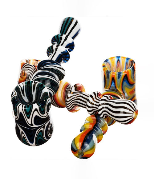 ¡Una colección para la colección de tu tienda! Las pipas Stokes Glass Bubbler son piezas completamente nuevas que son excelentes para ocasiones en movimiento y para inflar hierbas secas. Hechos a mano con vidrio de borosilicato duradero y decorados con patrones psicodélicos de colores, estos burbujeadores le brindan un agujero de carburador confiable que brinda una extracción rápida y golpes suaves. Cada burbujeador muestra un tazón profundo y ancho para contener una gran cantidad de hierbas para una experiencia Stokes excepcional. Los Stokes Glass Bubblers están disponibles en una colección de 6 y tienen nombres únicos como Hippie, Cosmic y Volcanic Ash. ¡Decora los estantes de tu tienda con estos hermosos burbujeadores para una exhibición vibrante!
