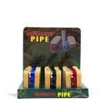 KOMPAKT! Die Mobacco Monkey Pipe ist eine neuartige Handpfeife, perfekt für unterwegs, wenn man trockene Kräuter raucht. Zusammengeklappt misst sie 3,8 cm, ausgeklappt 7,5 cm. Diese kleine Handpfeife aus robustem Aluminium und Holz verfügt über ein drehbares Mundstück und einen 1,3 cm großen Kopf zum Verpacken von Kräutern. Jedes Display enthält 12 Monkey Pipes, die Sie in Ihrem Laden präsentieren können!